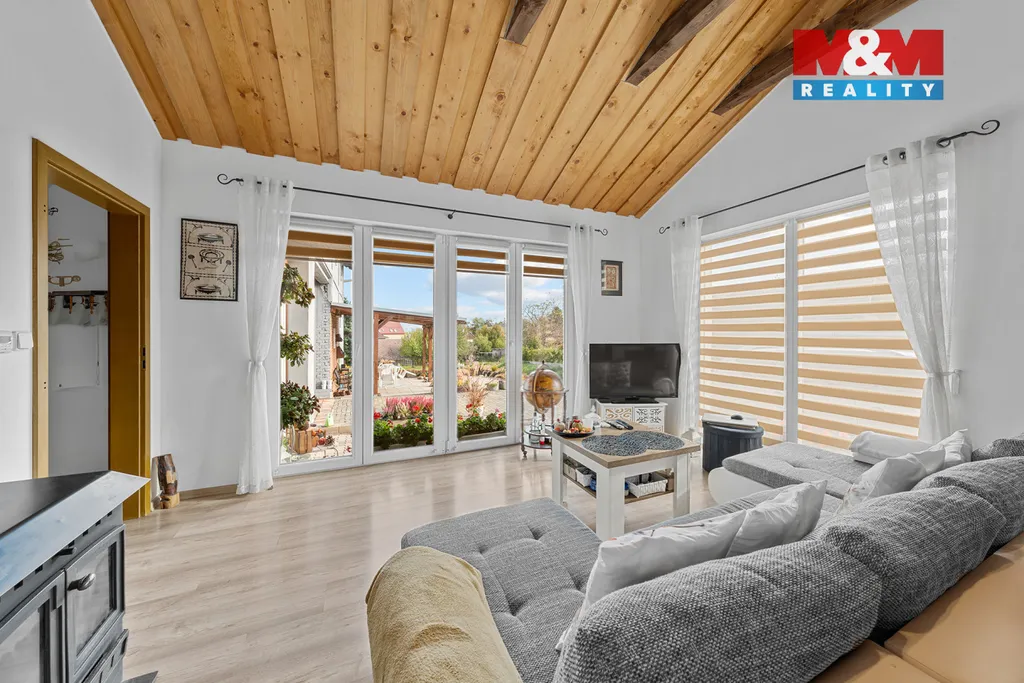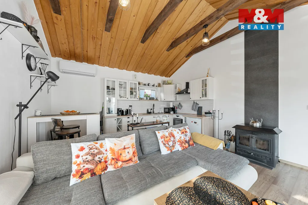 Dům se skládá z dispozice 2+kk se dvěmi koupelnami a prostornou zimní zahradou. Dále je zde prostorná stodola o ploše cca 150 m², která je vhodná například i pro podnikatelskou činnost. Vytápění je řešeno třemi způsoby: elektrokotlem, krbovými kamny a podlahovým topením. Velkou výhodou této nemovitosti je výkonná fotovoltaická elektrárna. Rodinný dům stojí na rozlehlém pozemku o výměře 2 307 m². Zahrada je převážně rovinatá, což nabízí mnoho možností pro zahradničení, relaxaci či rodinné aktivity. Dále je na pozemku vybudované jezírko. Nemovitost umožňuje okamžité nastěhování nebo úpravy dle vlastních představ. Ideální pro ty, kteří hledají harmonii přírody v dosahu města. Pro více informací a domluvení prohlídky kontaktujte makléře. Optimální financování Vám zdarma zajistí naši hypoteční specialisté.