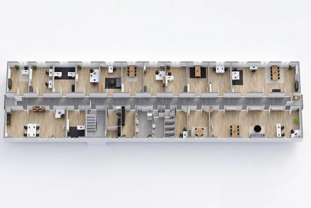Fotografie prostor, které jsou nyní pronajaty nejsou publikovány z důvody ochrany soukromí aktuálních nájemců. Byly proto nahrazeny vizualizacemi. V současné době jsou v pronájmu tyto obory - obchod s vodoinstalačním materiálem, účetní služby, pedikérka, kadeřník, realitní makléř, realitní správce budov a další profese. Využití budovy je mnohostranné a záleží na novém majiteli, jak bude tento potenciál dále rozvíjet.