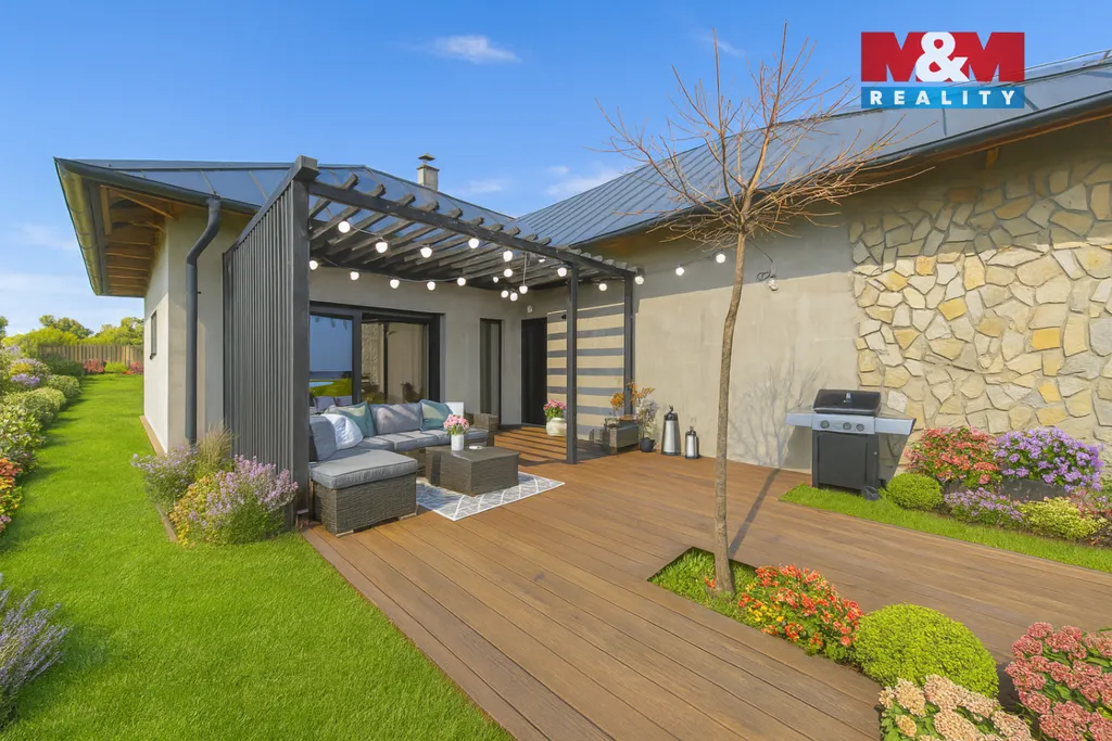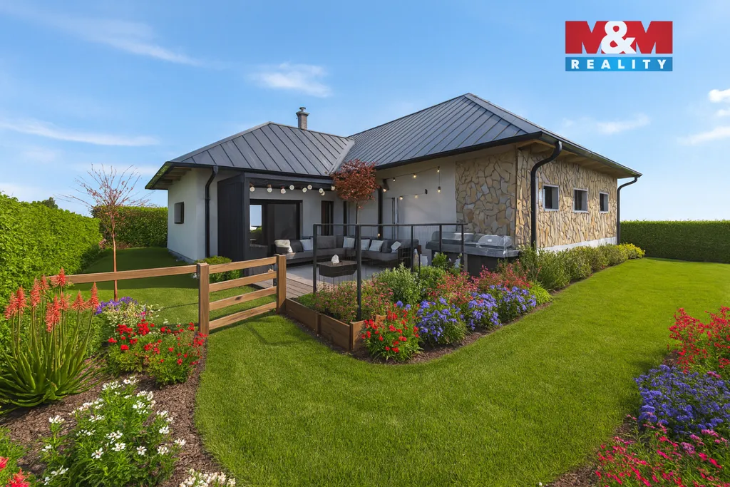 Ve výhradním zastoupení nabízíme k prodeji bungalov z roku 2022. Předností nemovitosti je zejména energetická náročnost A, podlahové vytápění, rekuperace vzduchu, vinylové podlahy, koupelna s osvětlením "noční nebe", moderní kuchyně, krbové kamna, ateliér, integrovaná garáž pro dvě auta, dílna, dvě půdy. Pro chvíle odpočinku můžete využít krytou terasu s pergolou, venkovním grilem a posezením. Zahrada má úctyhodných 915 m2. Pro její závlahu se využívá retenční nádrž o 10 m3. Ideální pro rodinný život. V obci je základní i mateřská škola, pošta, potraviny, hostinec, dětské hřiště. Dojezd na D1 je cca 15 min. Doporučujeme osobní prohlídku v této nové a moderní zástavbě na okraji obce. Pro více informací volejte RK. Zajistíme financování i pojištění nemovitosti.