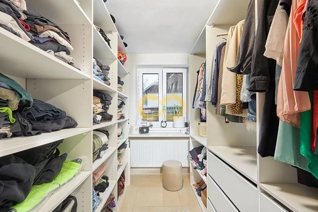 V domě jsou celkem 4 pokoje a 2 koupelny. První ložnice je v přízemí a kromě velké šatny s technickou místností má taky vstup na zahradu. Vedle ložnice je koupelna se sprchovým koutem a toaletou.