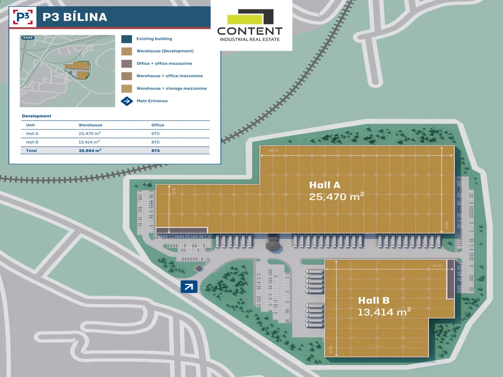 - jednotky od cca 5000 m² až 13414 m² pod jednou střechou