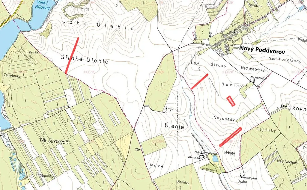 V katastrálním území Nový Poddvorov je na listu vlastnictví 211 k prodeji několik parcel. Jedná se o parcely č. 380/6, 379/47, 522/66 a 531/78, převážně orné půdy. Pouze 9 m2 je ostatní plocha.