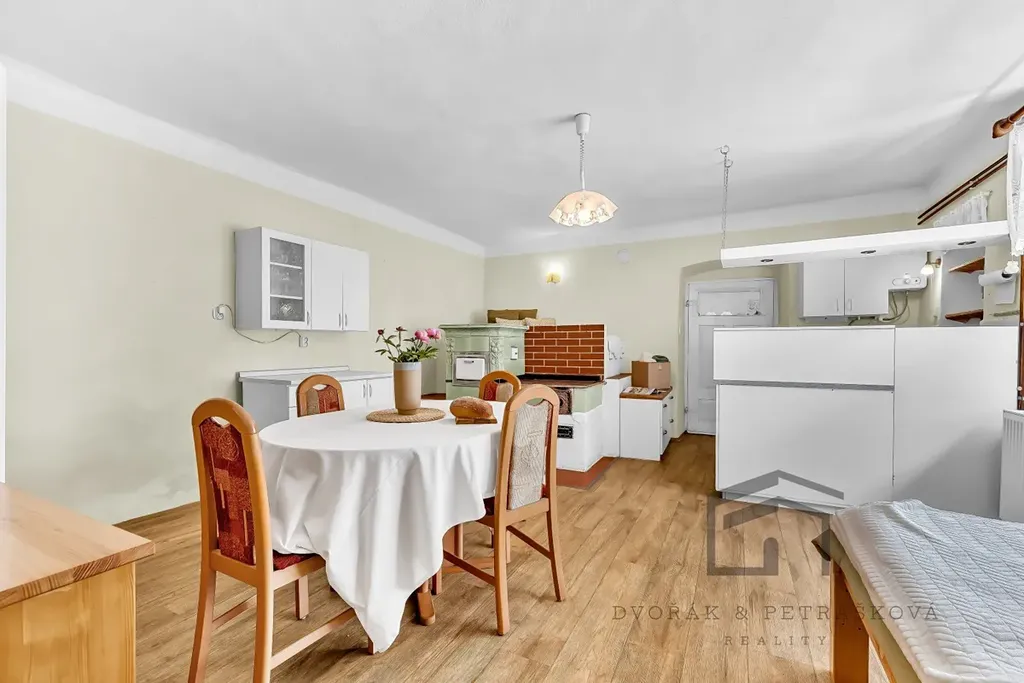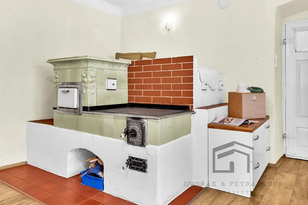 Vytápění zajišťuje plynový kotel, ale pro milovníky tradice je zde i funkční kachlová pec. V obývacím pokoji vás pak zahřejí krbová kamna. Pokoj je situován do ulice a ložnice v půdní nástavbě. Nejdůležitější rekonstrukce proběhly okolo roku 2000.