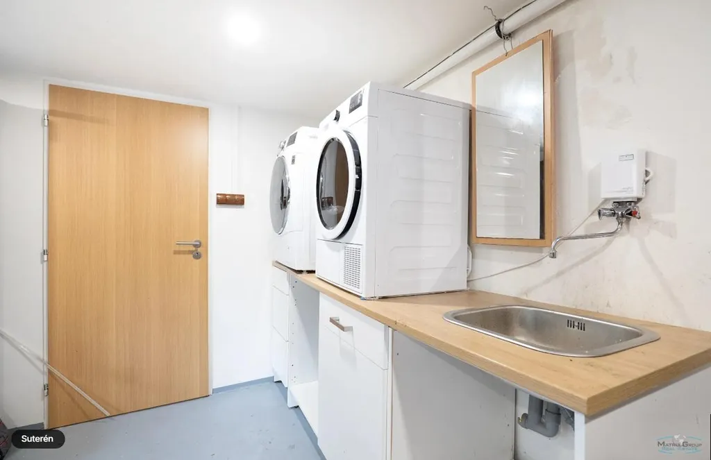 V suterénu o celkové ploše 57m2 je částečně původní podsklepení z r. 1902, ideální pro