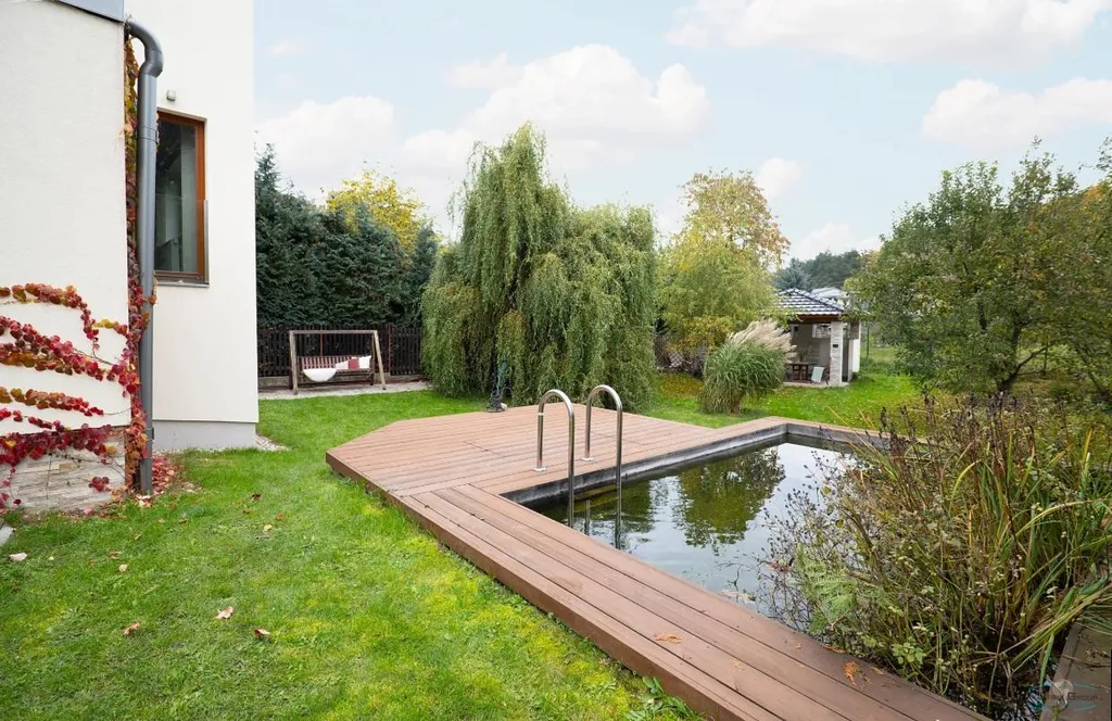 koupacím jezírkem a parkovacím stáním až pro 4 vozy, s přípravou pro stavbu garáže pro dva