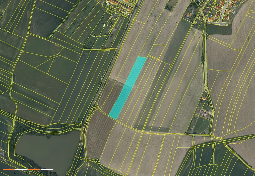 Pozemek je veden jako orná půda o celkové výměře 8 784 m² a tvoří ucelený funkční celek. Velkou výhodou je přímý přístup z komunikace spojující Vodňany a Chelčice, což zajišťuje výbornou dopravní dostupnost a snadnou obslužnost.
