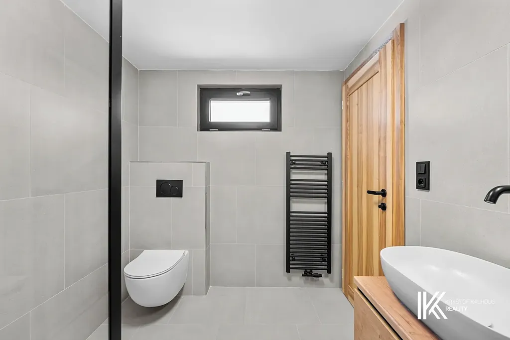 Dům je navíc připraven na moderní způsob správy a zabezpečení – majitel při rekonstrukci myslel na budoucí pohodlí. Všechny rozvody a technické přípravy jsou hotové pro instalaci kamerového systému, alarmu, chytré domácnosti i bezkontaktního vydávání klíčů přes kódový zámek. Tato infrastruktura umožňuje pohodlné a bezpečné ovládání domu na dálku, což ocení nejen majitelé využívající nemovitost jako víkendové bydlení, ale především investoři plánující krátkodobé pronájmy. Díky těmto řešením je provoz domu snadný, přehledný a bez nutnosti neustálé osobní přítomnosti.