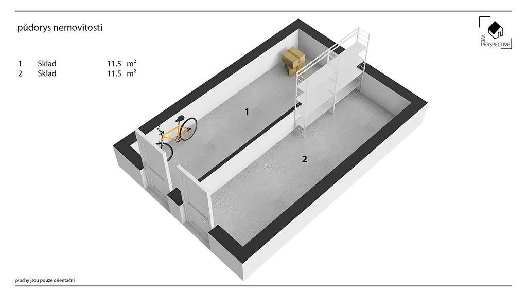 Ve druhém patře se nachází velká podkrovní místnost s odhalenými dřevěnými trámy, která prostoru dodává útulný a přirozený charakter. Skvěle poslouží jako dětský pokoj s hernou.