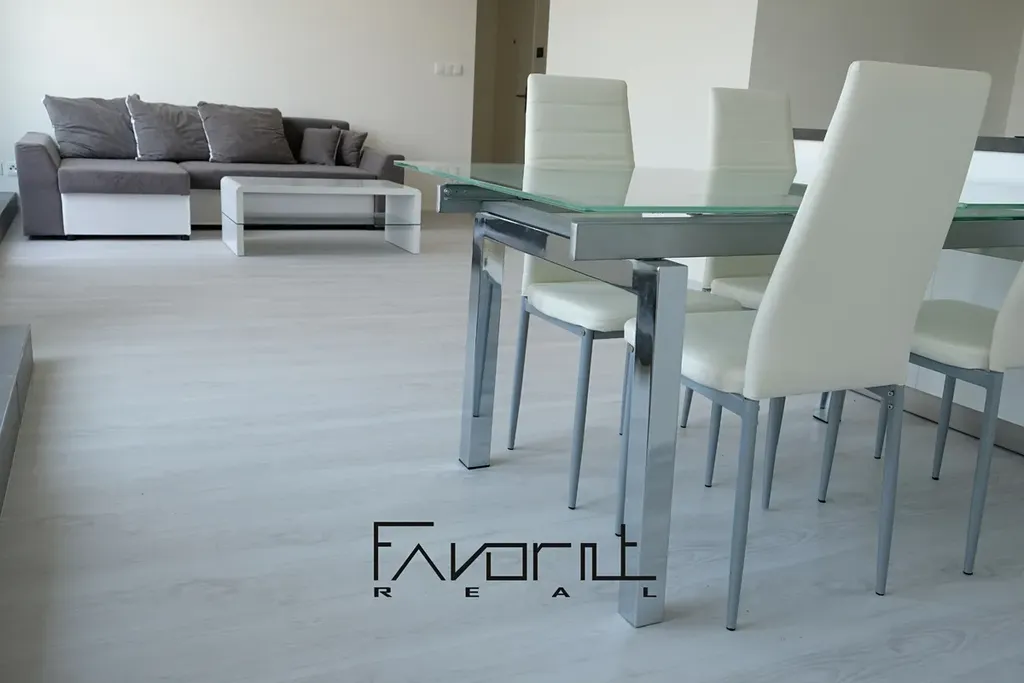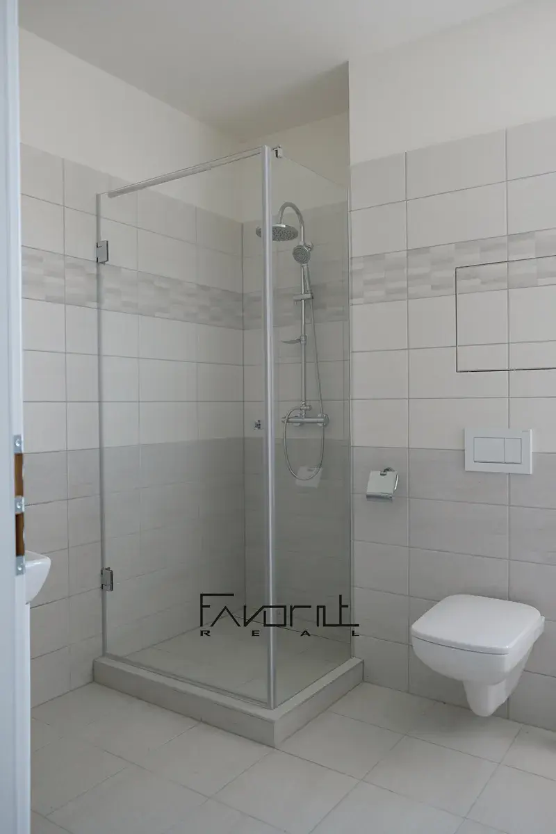 Dispozice bytu: obývací pokoj s kuchyňským koutem a vstupem na terasu, samostatný ložnicový pokoj, prostorná chodba, dvě koupelny, sprchový kout, vana. WC je zvlášť.