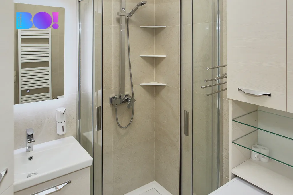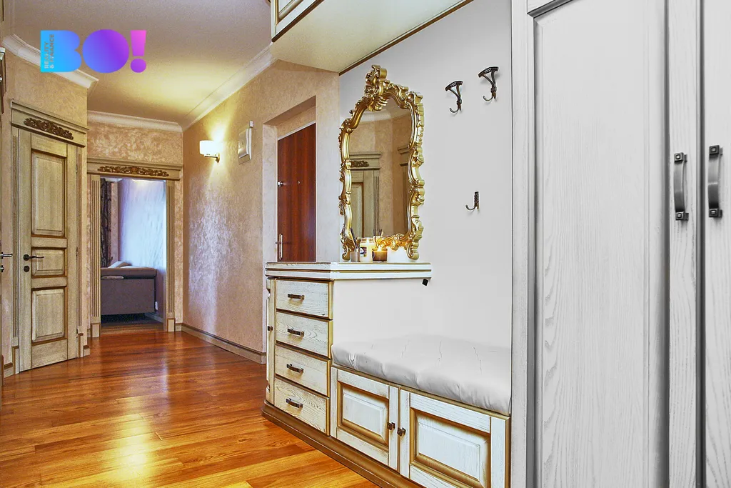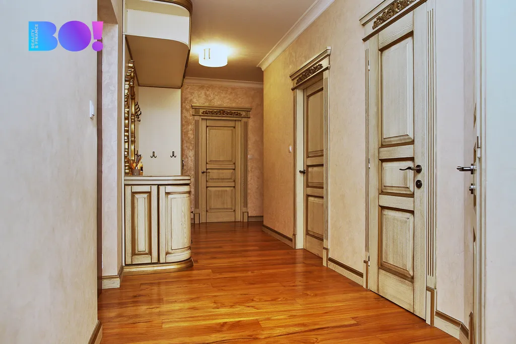 Interiér bytu byl navržen s důrazem na nadstandardní materiály a provedení. Obložky, vestavěný nábytek v luxusním benátském stylu, doplněný výmalbou v hedvábném lesku dodávají prostoru jedinečný charakter a eleganci, která příznivce této estetiky okouzlí na první pohled.