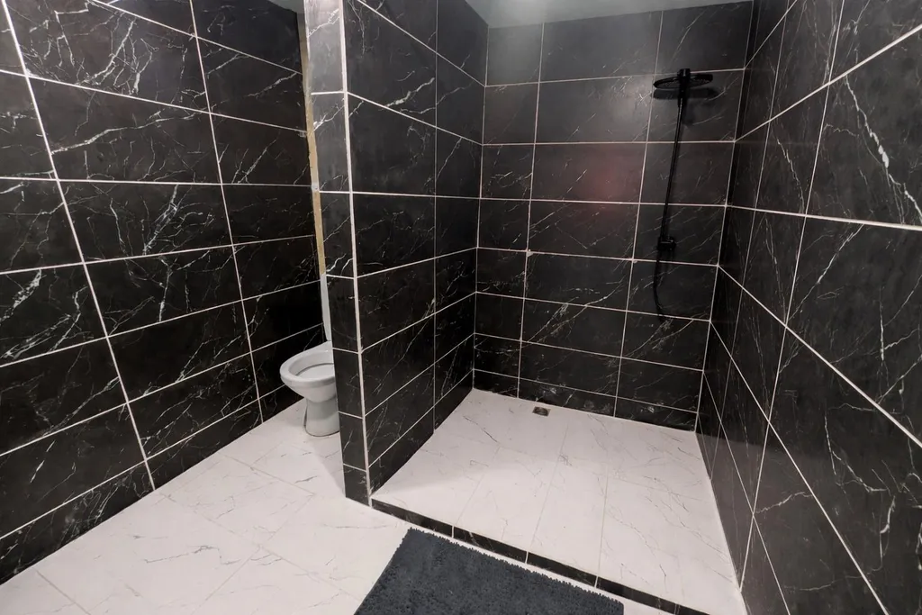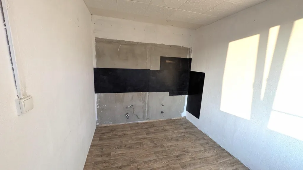 V koupelně je sprchový kout, WC odděleno příčkou. Koupelna je obložena moderními obklady. Z obývacího pokoje je přístup na balkón. Kuchyňská linka není součástí vybavení kuchyně. Byt se prodává bez vybavení.