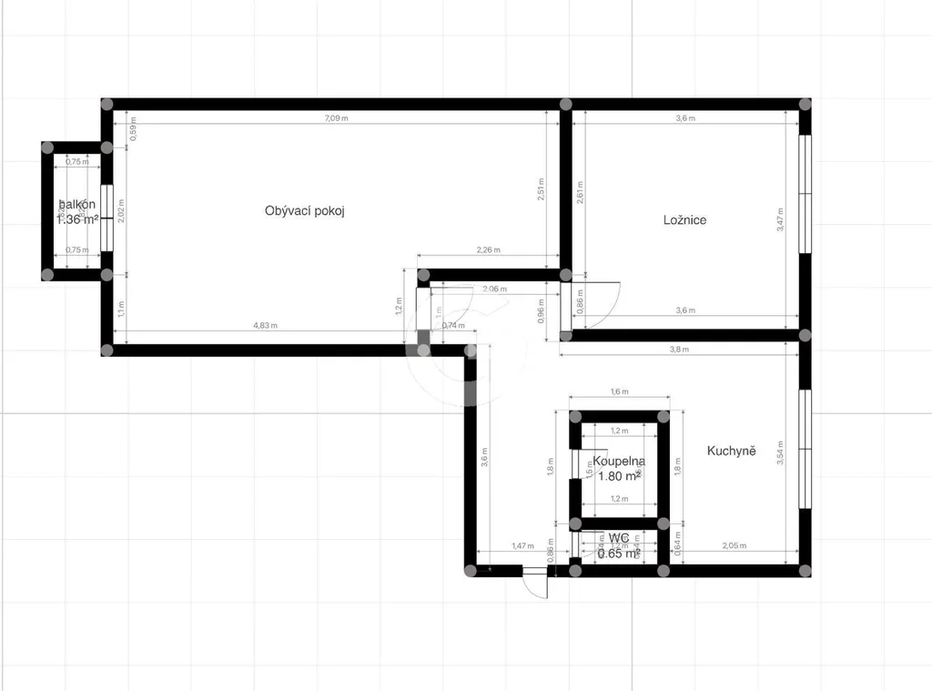 Dispozice bytu nabízí víc, než se na první pohled zdá. Vedle klasického řešení 2+1 zde najdete také prakticky oddělený prostor, který dnes funguje jako