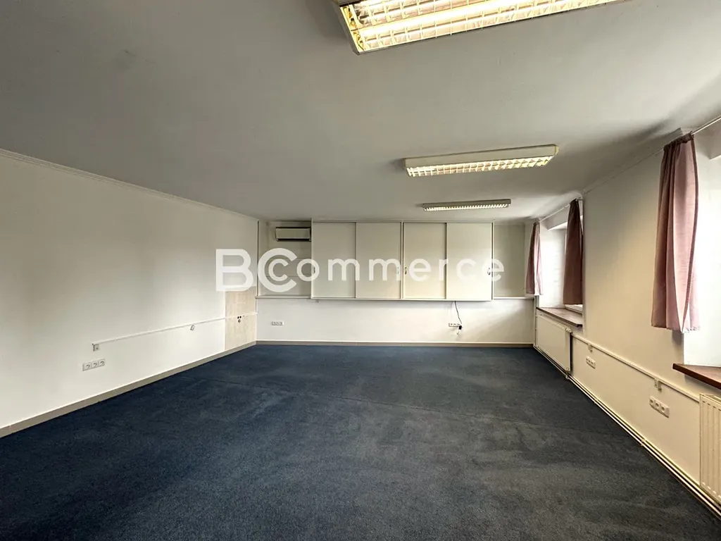 Nabízíme k pronájmu samostatný moderní dvoupodlažní kancelářský objekt s parkováním přímo u objektu. V přízemí o velikosti 77m2 se nachází velká klimatizovaná kancelář, která je vzhledem k umístění přímo u vchodu vhodná jako showroom, jednací místnost apod. Kancelář má přípravu na kuchyňku, v přízemí jsou dále umístěny wc a sprchy.