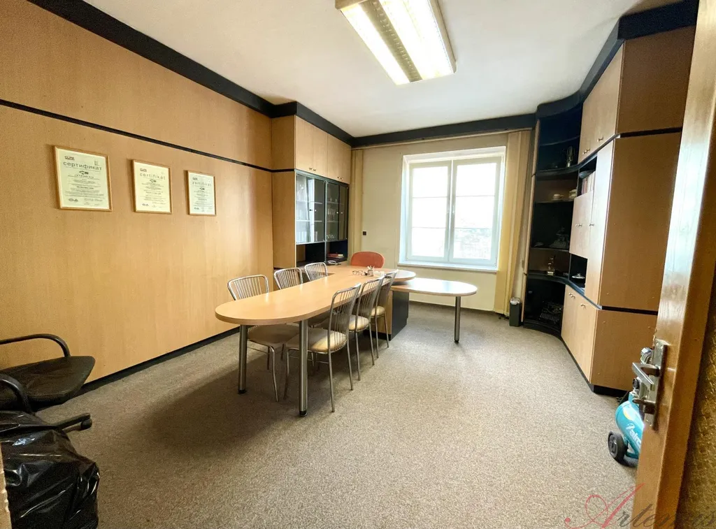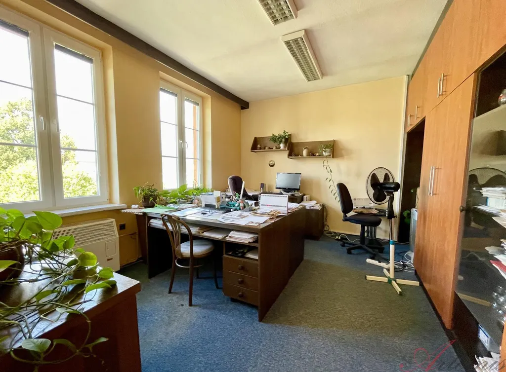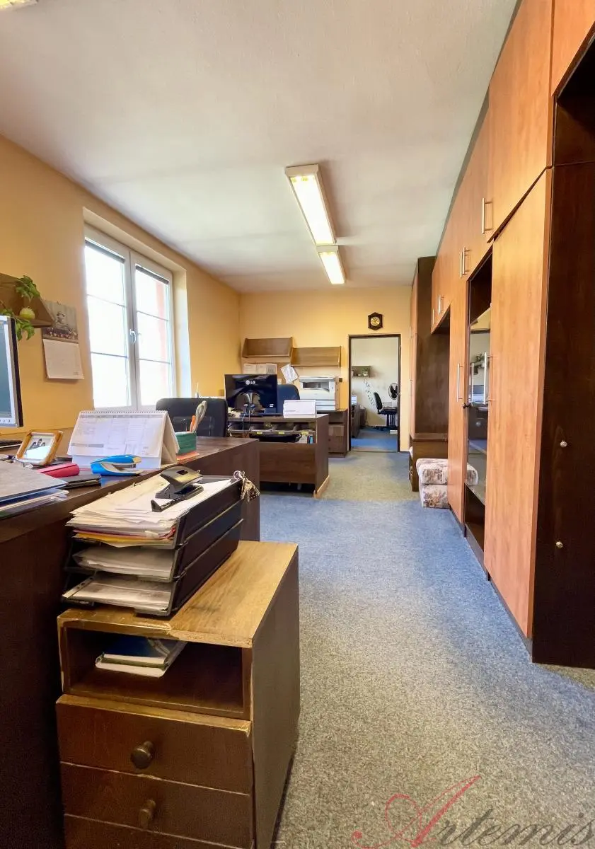 K celopodsklepenému domu s třemi nadzemními podlažími o výměře 321m2 a zastavěné ploše 136m2 náleží udržovaná zahrada o výměře 188m2. Bytové jednotky o dispozici 3+1 slouží jako kanceláře a disponují komorou, sociálním zařízením a kuchyňkou. Druhé nadzemní podlaží má nad rámec balkon s výhledem do zahrady, třetí podlaží navíc dvě další místnosti, sloužící coby sklad archiválií. Vytápění zajišťují plynová topidla Gamat a plynový kotel, v podkroví je instalována klimatizace. Pro každé patro je samostatný elektroměr a plynoměr. Rozvody v domě jsou: elektřina - částečně měď, plyn - převážně měď, voda - plastové / ocelové trubky, vnitřní odpadní trubky - převážně plast.