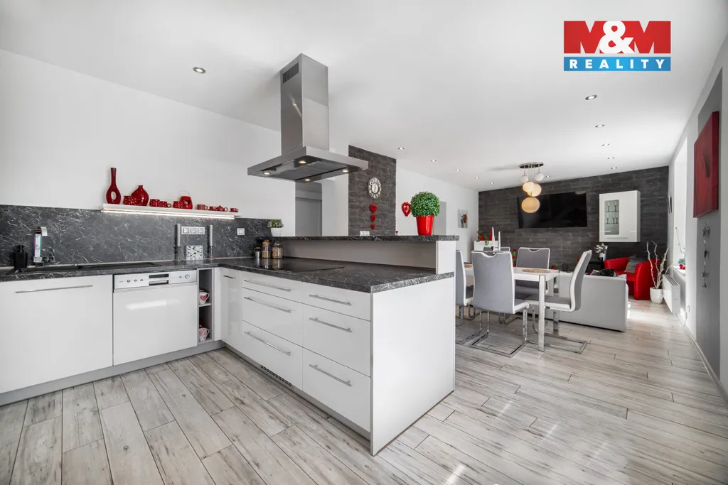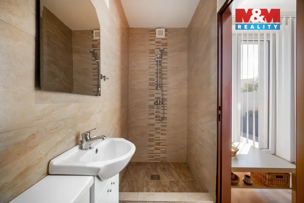 V prvním patře je situována moderní bytová jednotka s otevřeným obývacím prostorem a kuchyňským koutem, ložnicí s navazující koupelnou, samostatným WC, spíží a technickou místností.