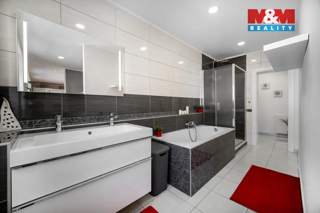 Podkroví nabízí dvě samostatné ložnice, koupelnu a praktické šatní prostory.