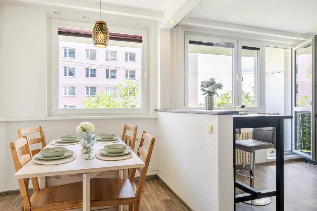Byt prošel rekonstrukcí a nabízí praktickou dispozici s dostatkem prostoru pro rodinu, pár i jednotlivce, kteří hledají pohodlné a klidné bydlení s veškerým zázemím v dosahu. Velkou výhodou je lodžie, příjemné umístění v domě i dobrý technický stav celé budovy.