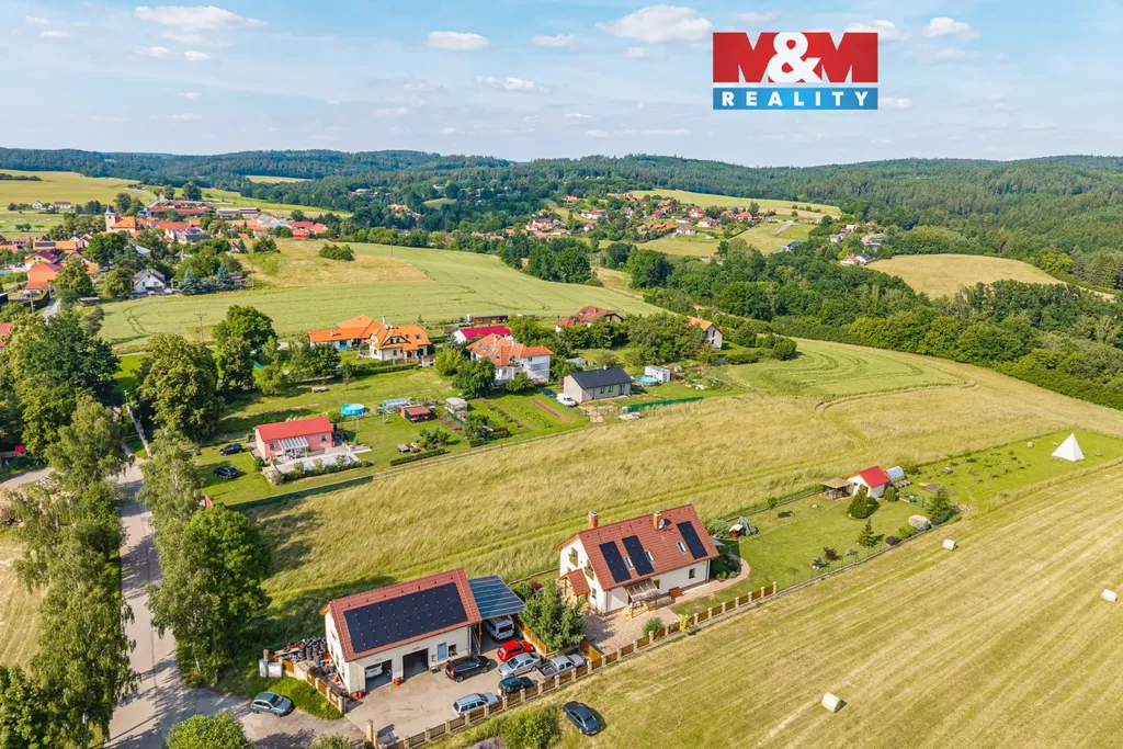 Nabízíme k prodeji atraktivní stavební pozemek o rozloze 3 448 m² na okraji malebné obce Hrusice, spjaté se spisovatelem Josefem Ladou. Lokalita nabízí klidné venkovské bydlení s výbornou dostupností do Prahy – autem asi 25 minut, hromadnou dopravou do 40 minut. Pozemek leží v mírném svahu a poskytuje krásný výhled do krajiny. V územním plánu je veden jako SV – plochy smíšené obytné venkovské, s koeficientem zastavitelnosti 35 %. Na hranici pozemku jsou veškeré inženýrské sítě (elektřina, voda, kanalizace). Díky velikosti nabízí více možností využití – od stavby prostorného rodinného domu s velkou zahradou až po investici v podobě rozdělení na dvě samostatné stavební parcely. Rozdělení má již vydané povolení od stavebního úřadu a schválený geometrický plán. Skvělá příležitost ke koupi pozemku spojujícího klid, přírodu a blízkost Prahy – ideální pro bydlení i investici.