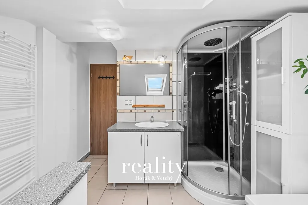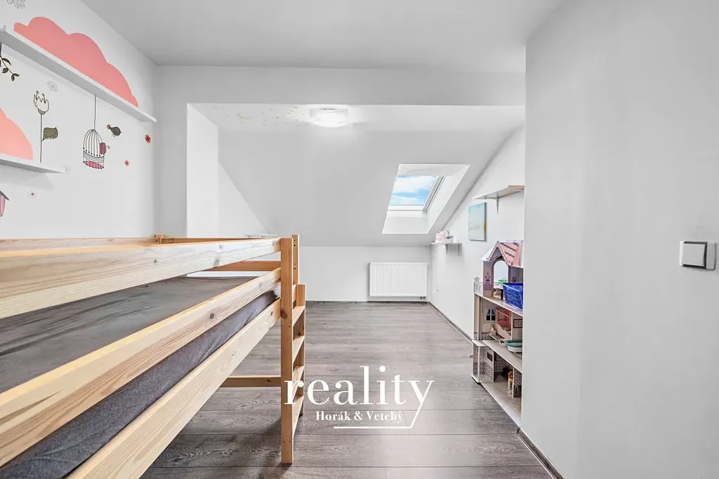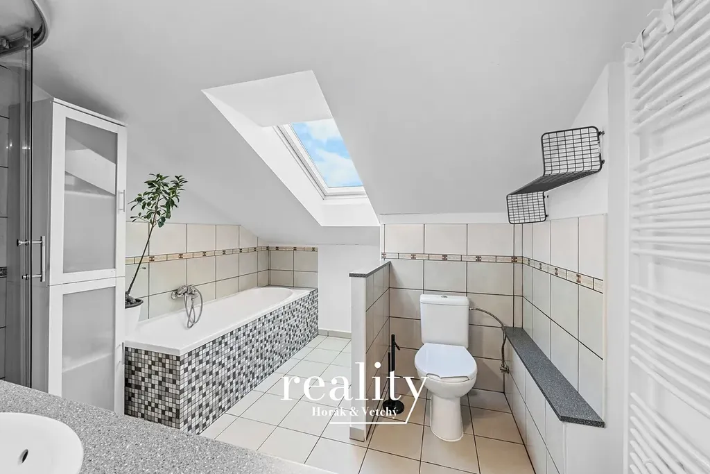 Ložnice i koupelna disponují dalšími střešními okny orientovanými na jihozápad, což zajišťuje dostatek denního světla po celý den.