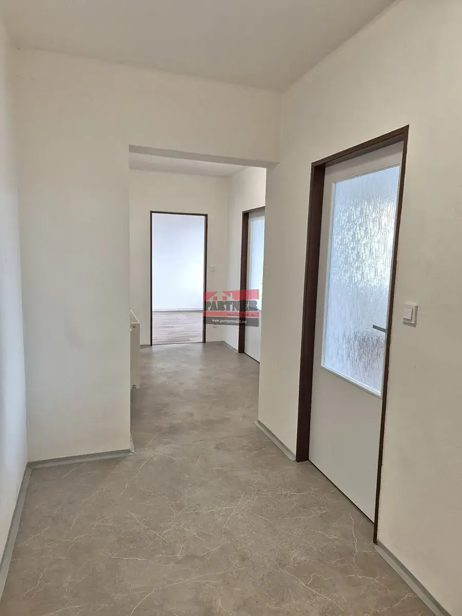 Byt o výměře 86,3 m² prošel v roce 2024 kompletní rekonstrukcí a nabízí prakticky řešený prostor: obývací pokoj, samostatnou kuchyni, ložnici a dva další pokoje, dále chodbu, koupelnu a samostatné WC. Orientace na východ a západ zajišťuje dostatek denního světla.