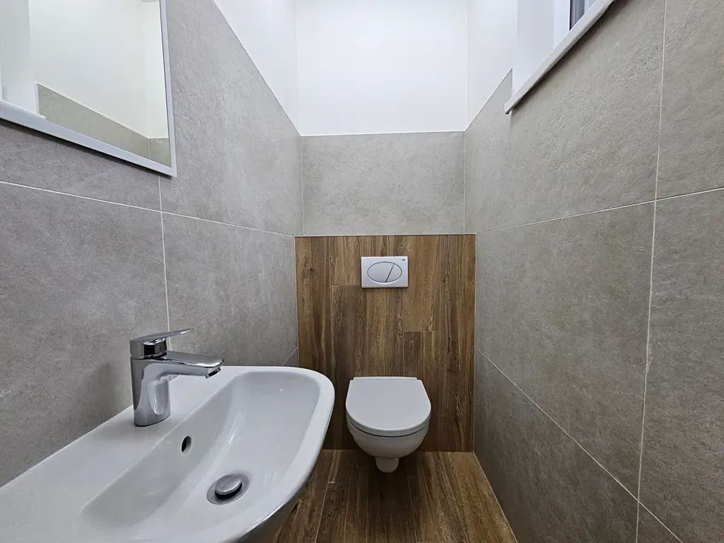 Ve druhém nadzemním podlaží se nachází tři ložnice o výměrách 10,3 m2, 13,5 m2 a 15,5 m2 a prostorná koupelna v moderním stylu se sprchovým koutem i vanou. Podkroví disponuje dostatkem prostoru pro uložení všech sezonních věcí.