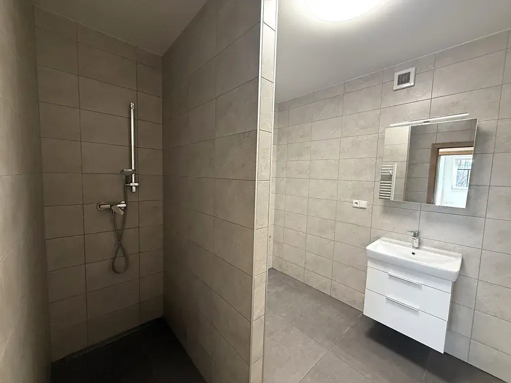• Spodní podlaží: vstupní chodba, koupelna se sprchovým koutem a WC, samostatný pokoj, hlavní obytný prostor