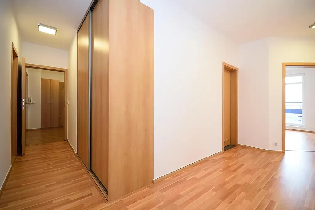 Na terasu o velikosti 48 m2 ve tvaru L vstup z každého pokoje. Nedávno instalovaná nová kuchyňská linka. Stejně tak provedeny moderní rekonstrukce obou koupelen. Díky centrální chodbě praktické řešení bytu. Ve všech ložnicích zatemňovací rolety.