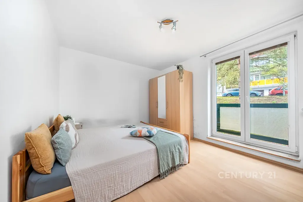 Absolutní soukromí: Výhled z oken i balkonu směřuje přímo do zeleně – žádný dům naproti, jen klid a volný prostor.
