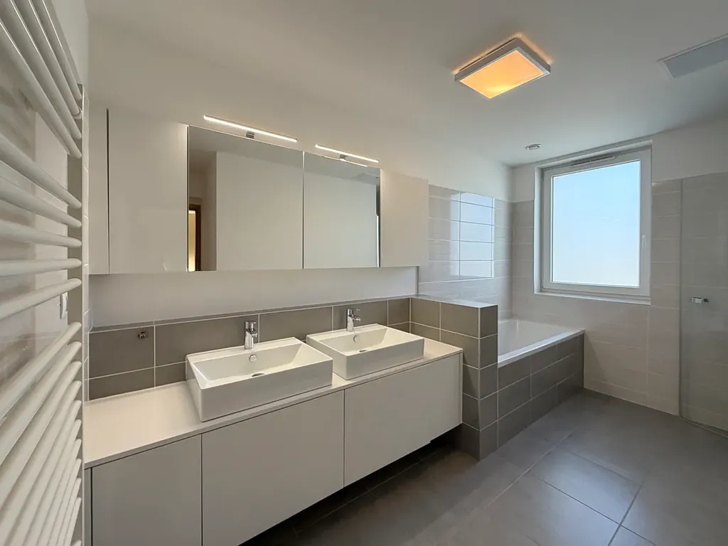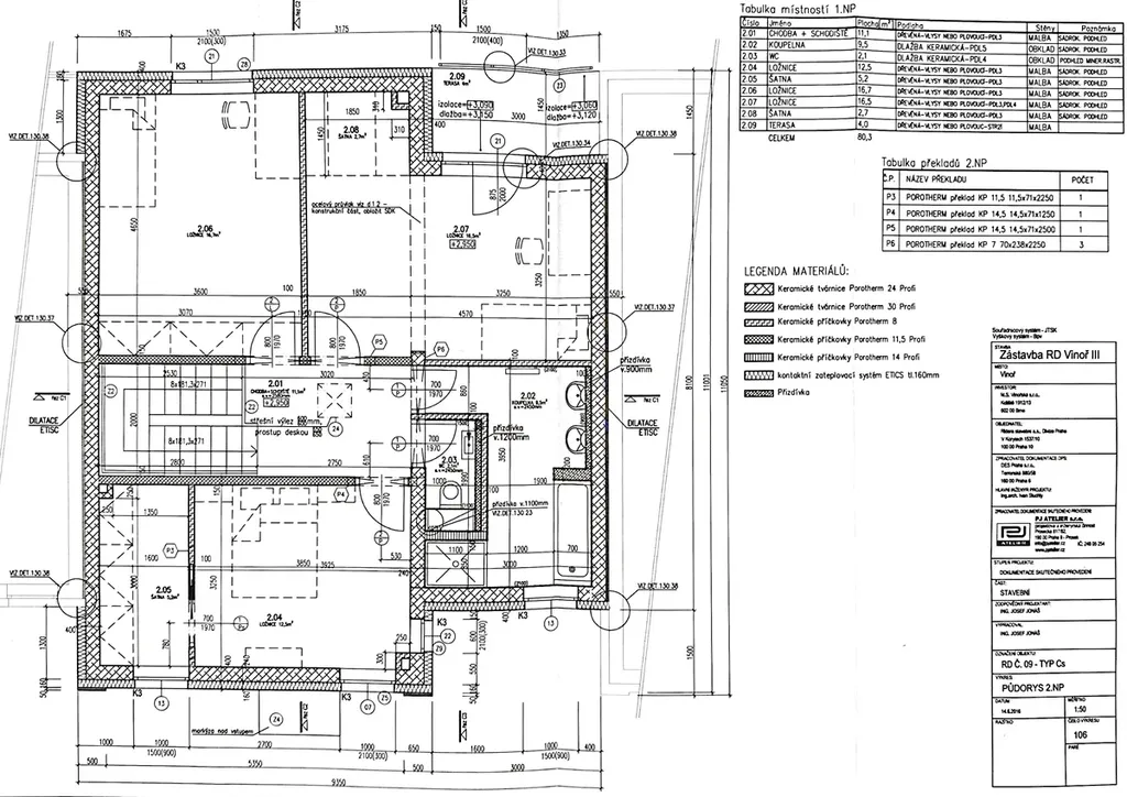 V patře jsou umístěny ložnice s oddělenou šatnou, další pokoj vhodný jako pracovna či dětský pokoj ,samostatné WC , koupelna s 2 umyvadly, vanou a sprchovým koutem. Nad galerií je praktický světlovod.