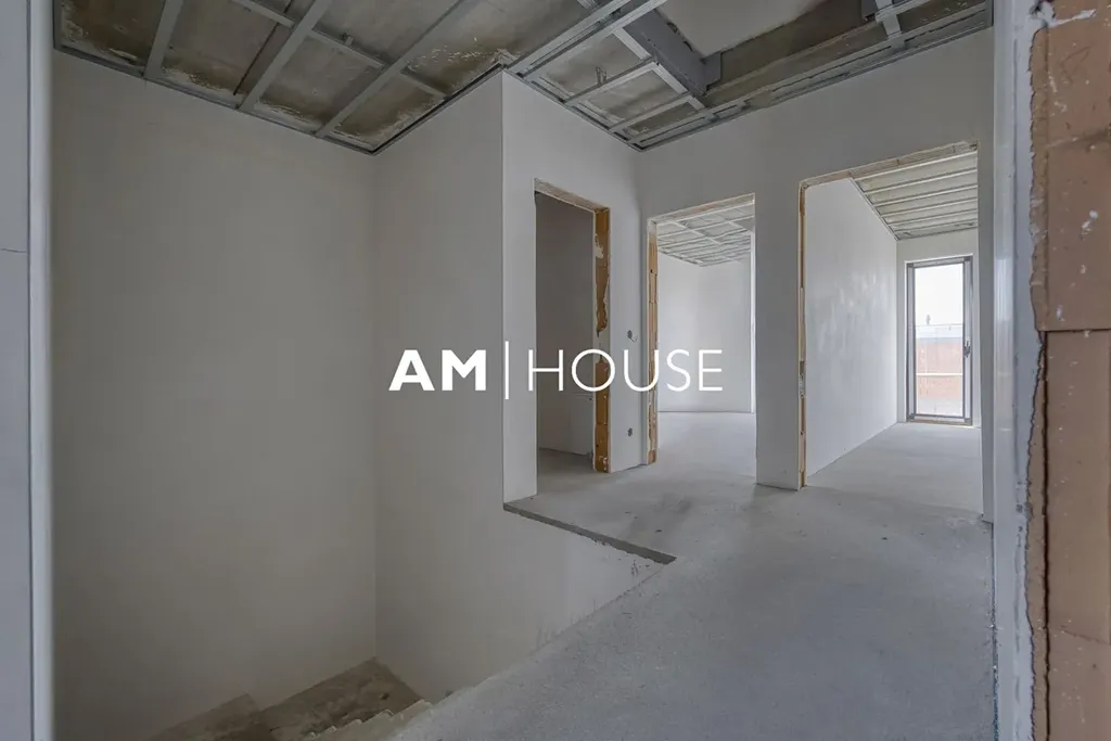 Tento unikátní byt se nachází v moderním dvojdomě na pozemku o rozloze 372,56 m. Prodává se jako samostatná bytová jednotka zabírající celou polovinu domu se samostatným vchodem, garáží s možností přestavby na plnohodnotnou místnost (např. pracovna nebo pokoj) díky podlahovému vytápění, a dvěma venkovními parkovacími stáními.