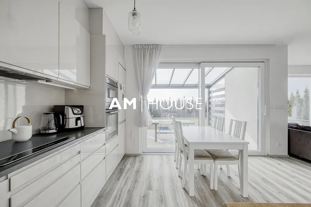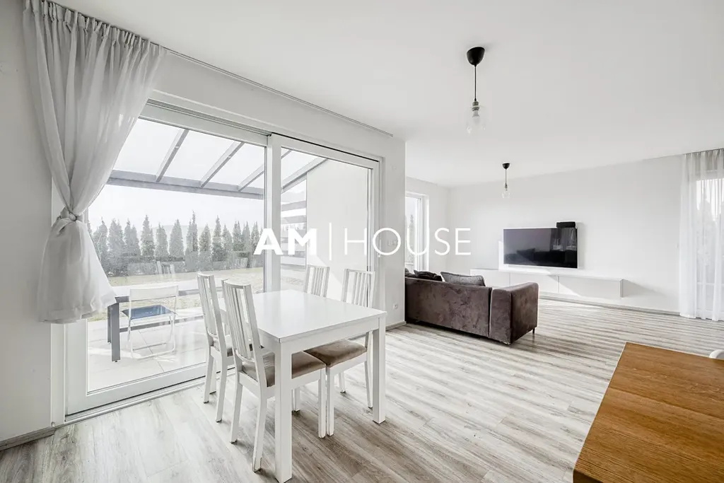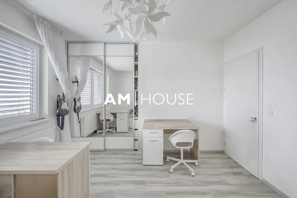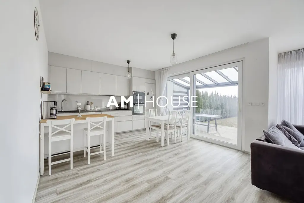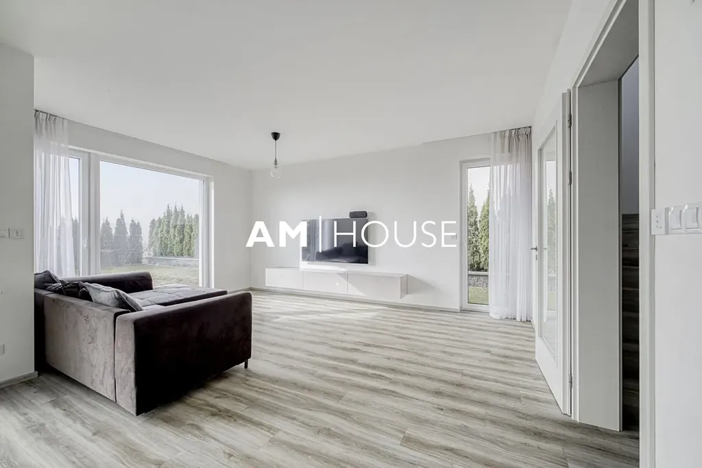 Dům nabízí komfortní rodinné bydlení s důrazem na moderní technologie, energetickou úspornost a praktické řešení prostoru. V přízemí se nachází prostorný obývací pokoj s kuchyňským koutem a přímým vstupem na zahradu, který tvoří přirozené centrum domu. Díky velkým oknům je interiér velmi světlý a příjemně propojený s venkovním prostorem. V patře jsou umístěny tři samostatné ložnice a koupelna, což poskytuje dostatek soukromí pro všechny členy domácnosti.