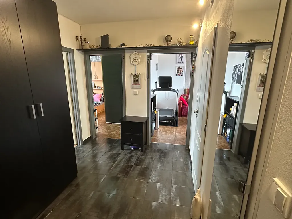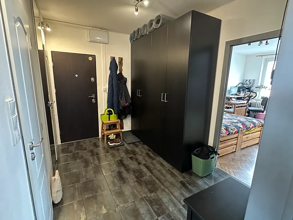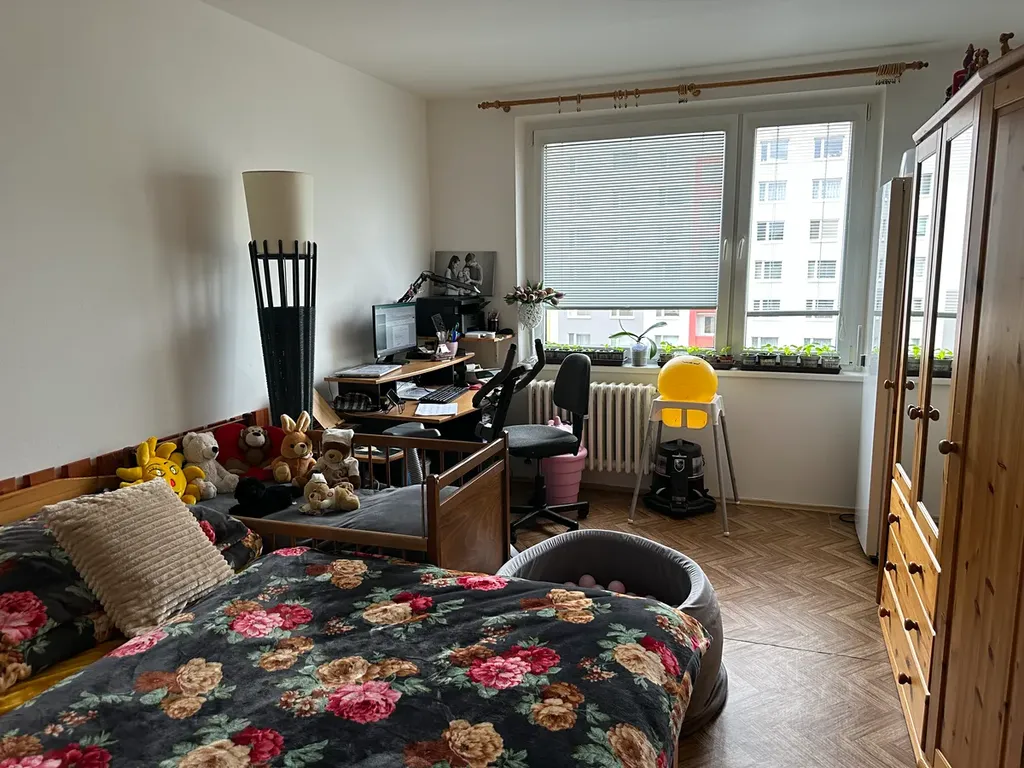 Nabízený byt je situován v posledním (devátém) nadzemním podlaží s výtahem. Dispoziční řešení je 3+1, jedná se o jednu z nejlepších dispozic panelových bytů. Předmětná bytová jednotka navíc prošla zdařilou kompletní rekonstrukcí vč. vyzdění bytového jádra, s lehkou úpravou uspořádání, v rámci které byla zvětšena kuchyně a koupelna. Byt má solidní výměry všech obytných pokojů – 20,40 m2, 16,30 m2 a 16,00 m2, výhodou je i velmi prostorná předsíň s vestavěnou šatnou. Všechny místnosti jsou samostatně přístupné. Z bytu je navíc mimořádný výhled. K bytu pochopitelně patří sklepní kóje v přízemí domu (přízemí domu má charakter technického podlaží) a lodžie, která je přístupná z dětského pokoje.