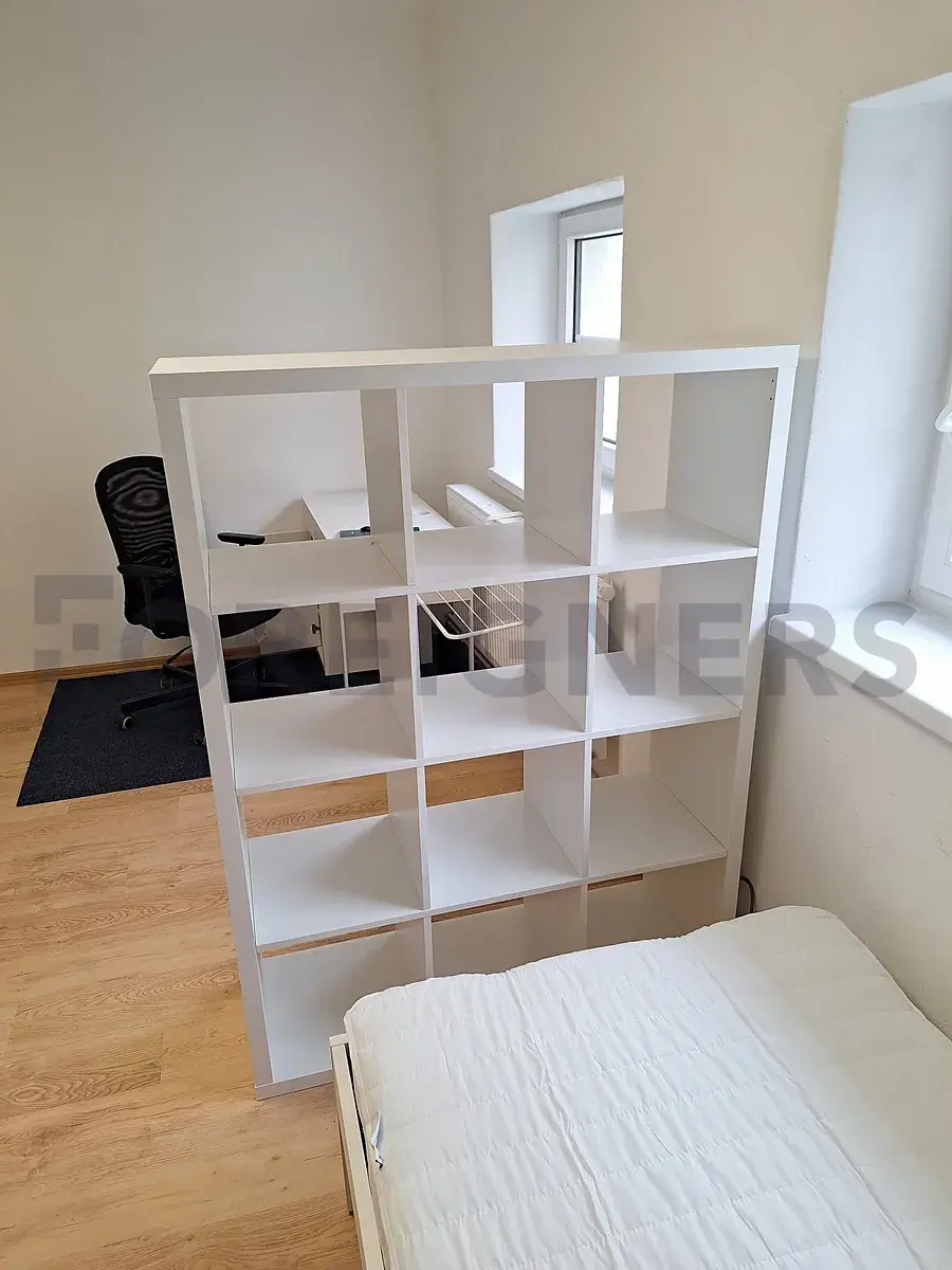 Hledáte klidné a zároveň centrální bydlení? Nabízíme světlý pokoj o rozloze 16 m², ideálně řešený pro komfortní bydlení – plně vybavený dvojlůžkem, pracovním stolem se židlí, komodou a šatní skříní.