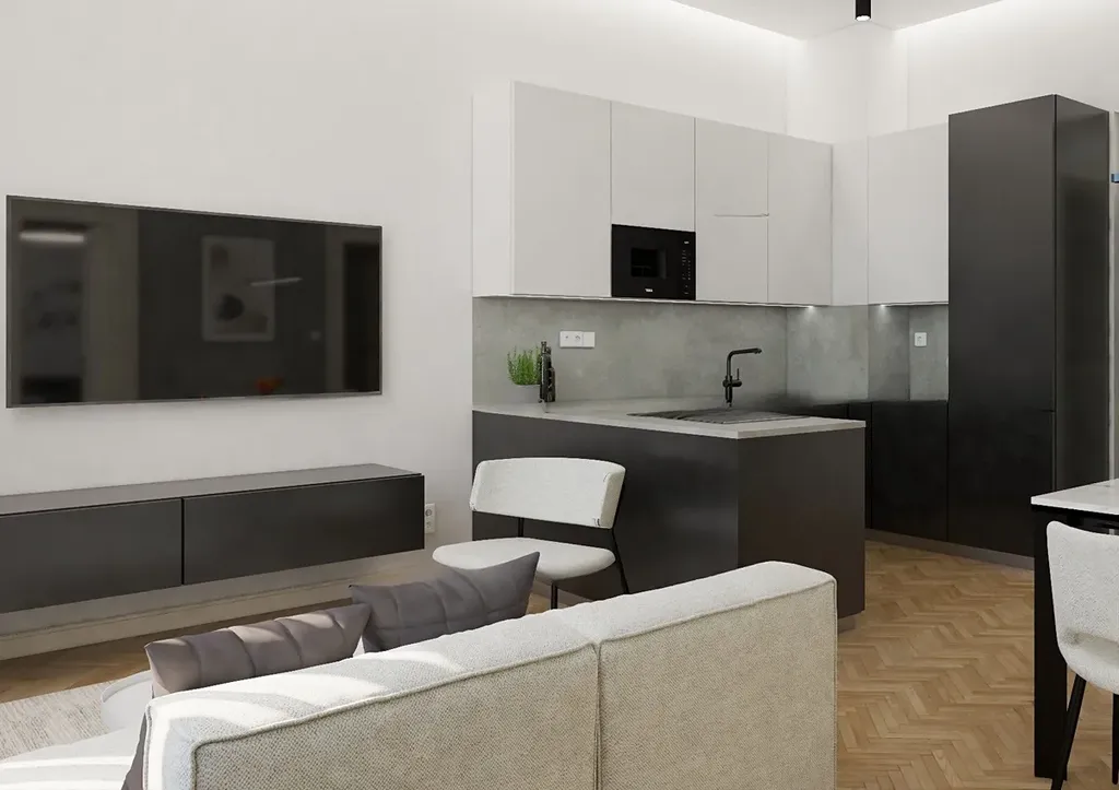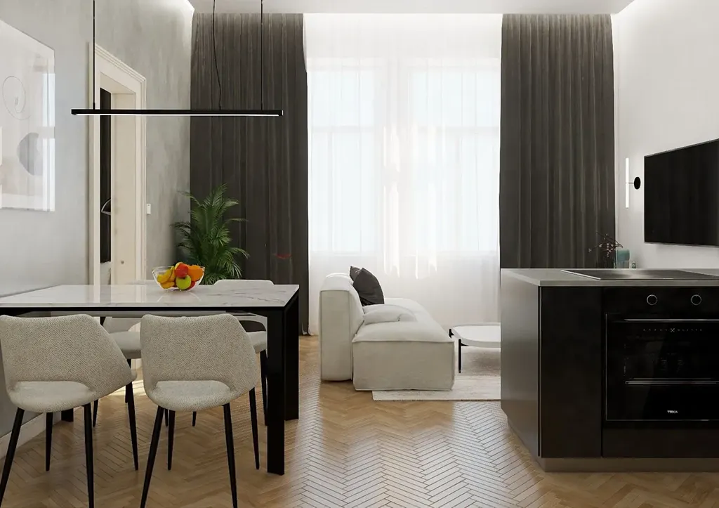 Jednotka vzniká v rámci kompletní rekonstrukce historického činžovního domu, která zahrnuje obnovu společných prostor i jednotlivých bytů. Projekt kombinuje původní architektonický charakter domu s moderním standardem bydlení.