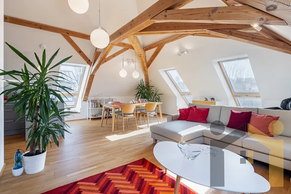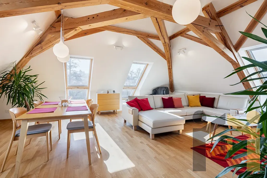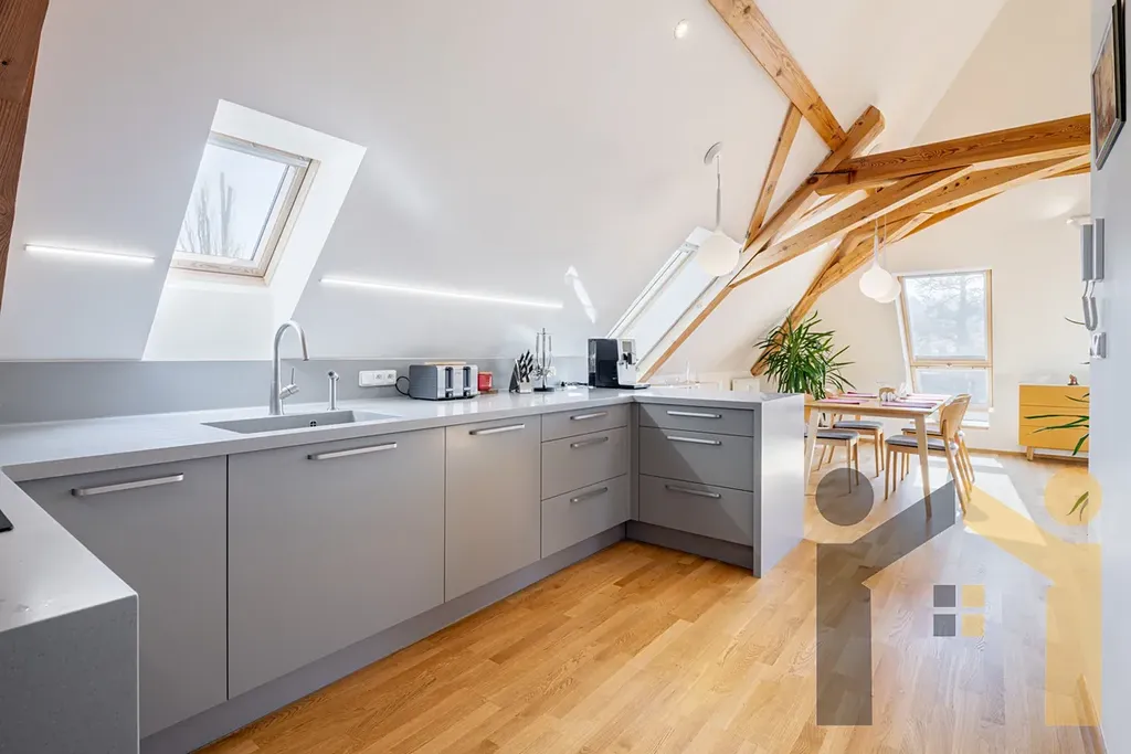 Tento byt 4+kk nadstandardní svou velikostí, netradičností a i vybavením na míru, je připraven změnit majitele. Byt je navržen architekty, přičemž byl dán důraz na kvalitní a designové materiály a prvky. Velkou výhodou tohoto bytu je veliká dotace přirozeného světla, výhled na všechny světové strany a multifunkčnost (ze střešních oken lze vytvořit střešní balkonová okna, tudíž za pěkného počasí je možné propojit interiér s exteriérem).