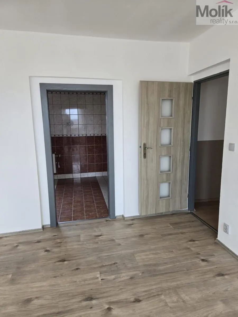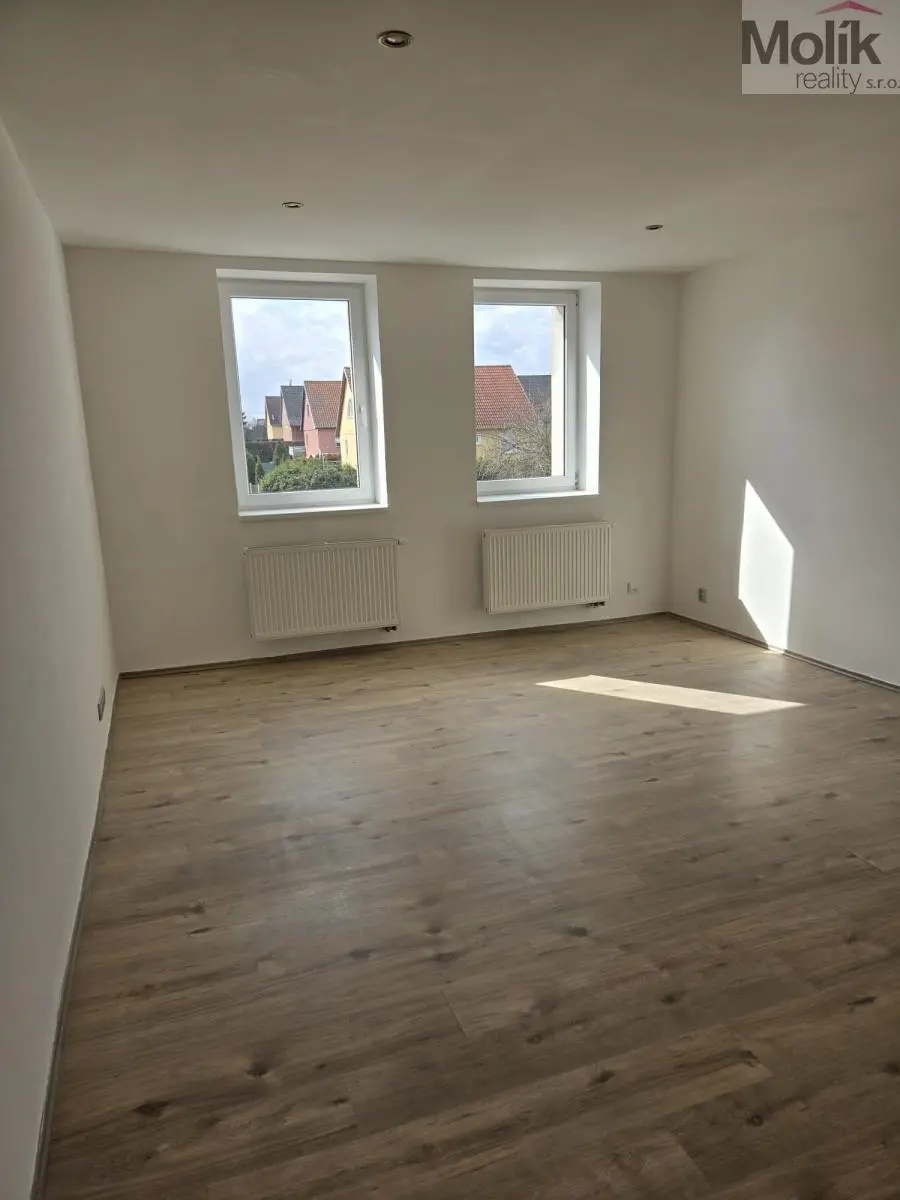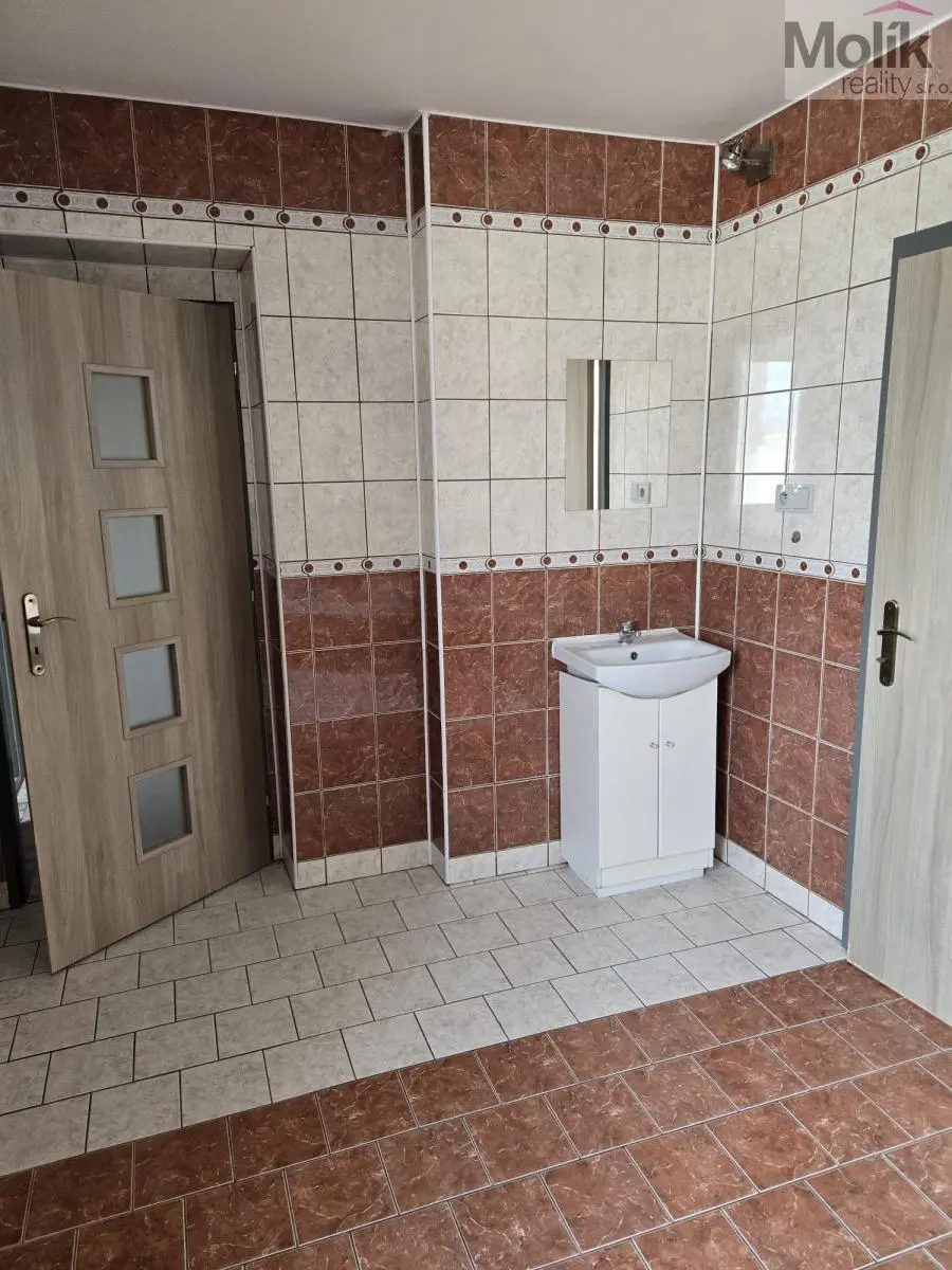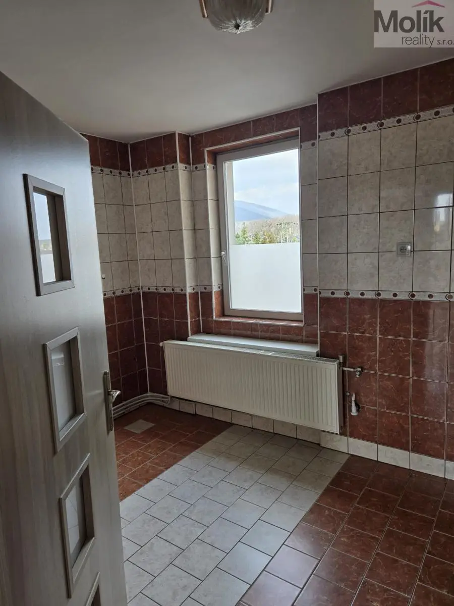 Nabízíme k pronájmu velmi prostorný byt o dispozici 3+1 a celkové výměře 103 m2, situovaný ve 2. patře cihlového domu na náměstí Republiky v obci Lom.