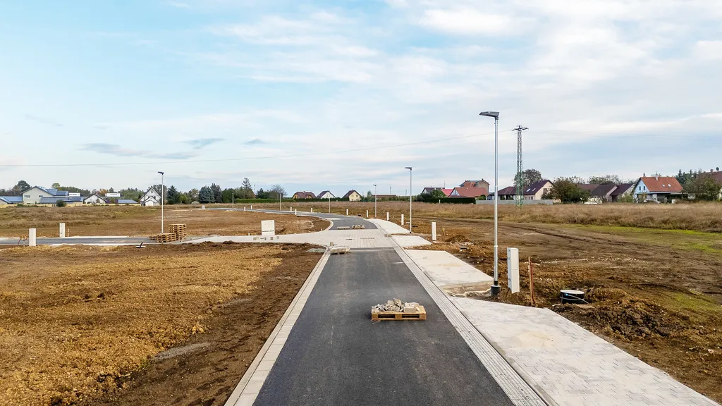 Inženýrské sítě jsou dokončeny, parcely jsou připraveny pro výstavbu rodinných domů.