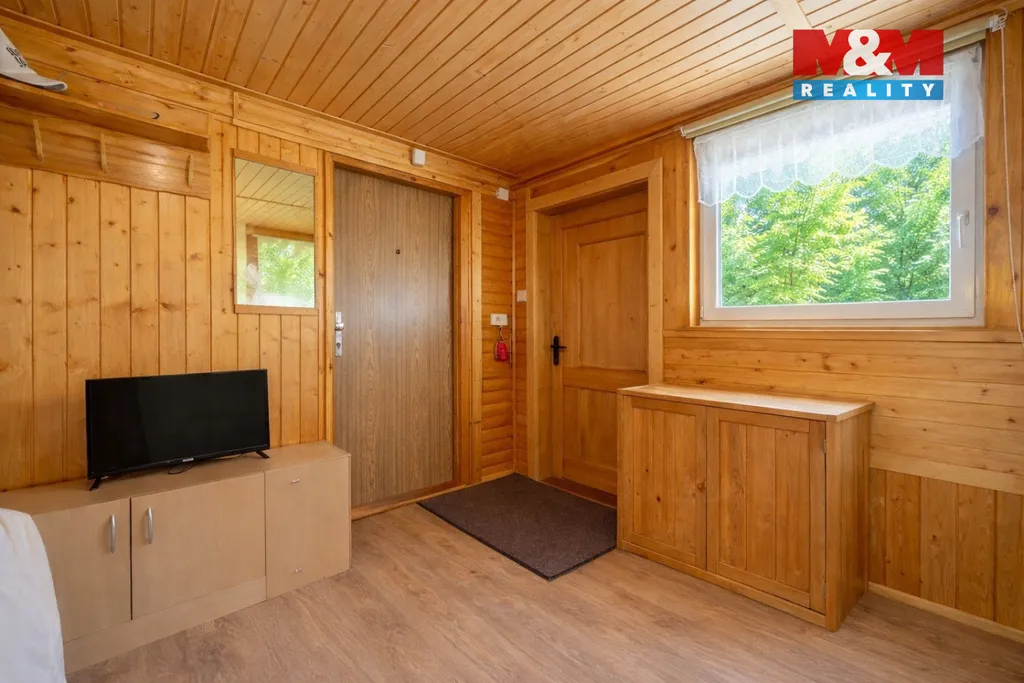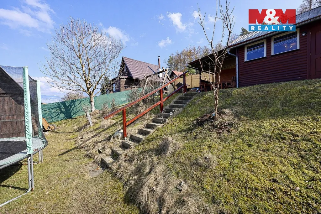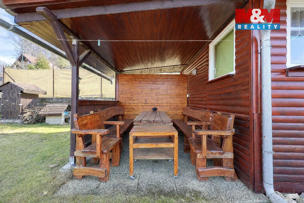 Velkým benefitem je zastřešená terasa s posezením, odkud si můžete vychutnat krásné výhledy do okolní přírody. Na pozemku najdete také kůlnu na nářadí, krb na grilování a udírnu – ideální pro chvíle s rodinou či přáteli. Parkování je pohodlně zajištěno přímo na pozemku u chaty. Na zahradě jsou ovocné stromy. Pokud hledáte místo pro relaxaci po pracovním vytížení, tak je právě tato chata pro vás. Zavolejte si o prohlídku.