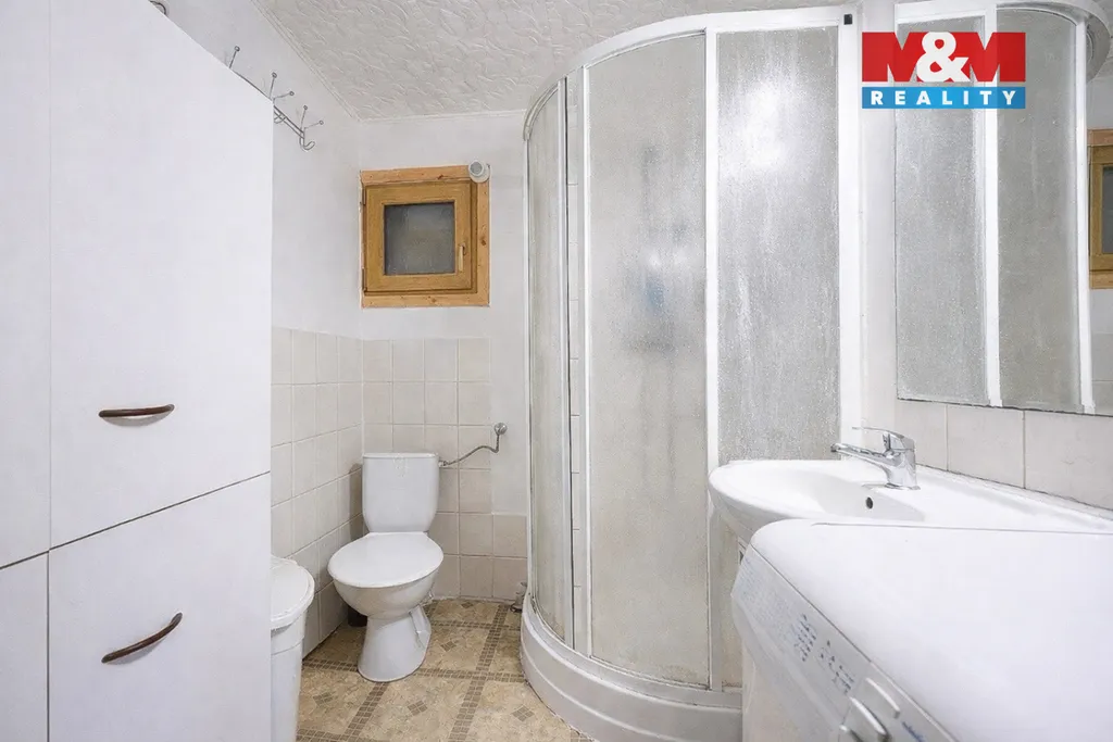 Součástí je také koupelna se sprchovým koutem a WC.