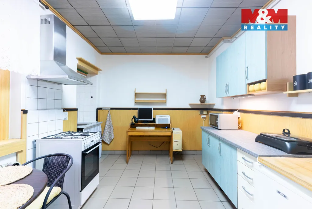 Dům je částečně podsklepený a nabízí také garáž pro dva automobily, sklad a dílnu. Část nemovitosti byla přistavěna přibližně před 15 lety, střecha prošla rekonstrukcí zhruba před 5 lety. Vytápění zajišťuje plynový kotel v kombinaci s elektrickými přímotopy a klimatizací, ohřev vody bojler.
