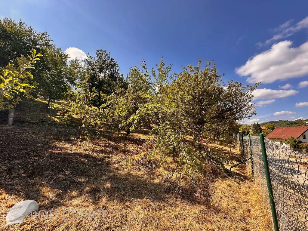 Zahrada je oplocená, převážně zatravněná s ovocnými stromy. Pozemek v šíři 14 - 19 m a délce 105 m je souběžný s vrstevnicemi a je mírně svažitý směrem k obci. Parcela je přístupná z krátké strany po zpevněné veřejné komunikaci z ulice V Zahradách, případně ze zadní strany pozemku, po nezpevněné lesní komunikaci od „křížku“ z ulice Žerůtská. Podél zahrady směrem k Lysicím se v současné době buduje nová, soukromá komunikace, která bude sloužit pro výstavbu 5 nových rodinných domů situovaných pod zahradou. Využití tohoto přístupu k zahradě je nutné diskutovat s vlastníky komunikace.