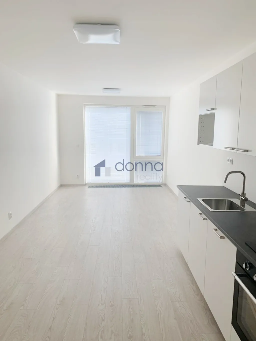 Byt je bez nábytku, k dispozici kuchyňská linka se spotřebiči (varná deska, digestoř a trouba).