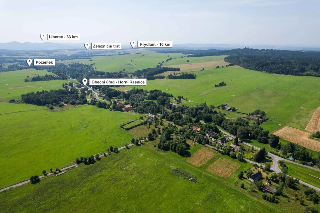 Rozsáhlé pozemky s atraktivním rozvojovým potenciálem nedaleko polských hranic, v obci Horní Řasnice na Frýdlantsku. Území o celkové výměře 36 096 m² představuje příležitost pro realizaci široké škály podnikatelských i developerských záměrů.