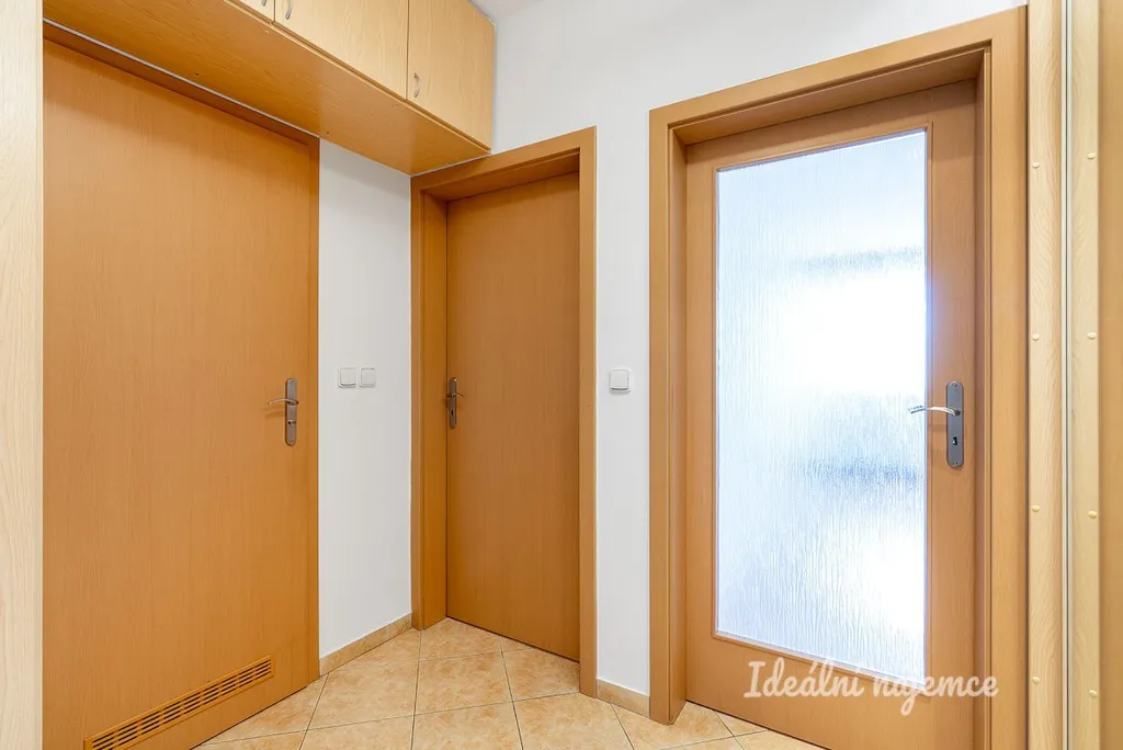 Byt se pronajímá převážně nezařízený. Kuchyňská linka je vybavena lednicí, myčkou, elektrickou troubou, varnou deskou, mikrovlnnou troubou a digestoří. Ložnice i vstupní chodba disponují praktickými vestavnými skříněmi.