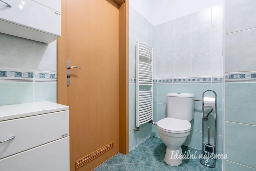 Koupelna je vybavena vanou, umyvadlem, toaletou a přípojkou na pračku.