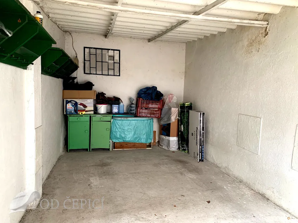 Cihlová garáž stojící na parcele o výměře 17m2 má vjezdový otvor o rozměrech 2,04m x 2,01m (šířka x výška). Vnitřní rozměr garáže je 5,21m x 2,82m (délka x šířka). Střecha garáže je pultová, v nedávné minulosti opatřena novou krytinou (viz fotodokumentace). Do garáže je zavedena elektřina.