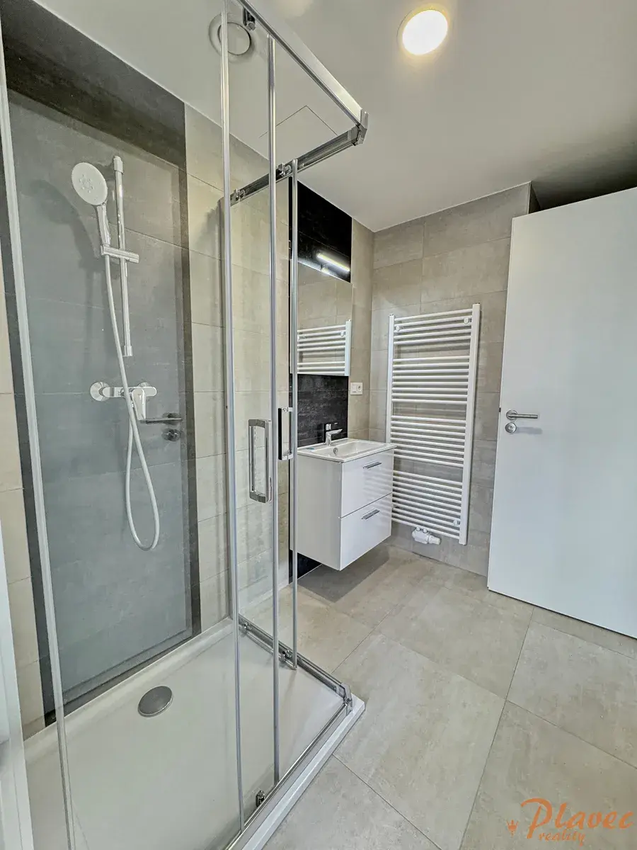 Nabízíme pronájem hezké novostavby bytu o velikosti 3+kk (a rozloze 64 m2) s balkonem (4,5 m2), sklepem (2,2 m2) a parkovacím stáním v klidné části města Hořovice, ulice Kopřivová.