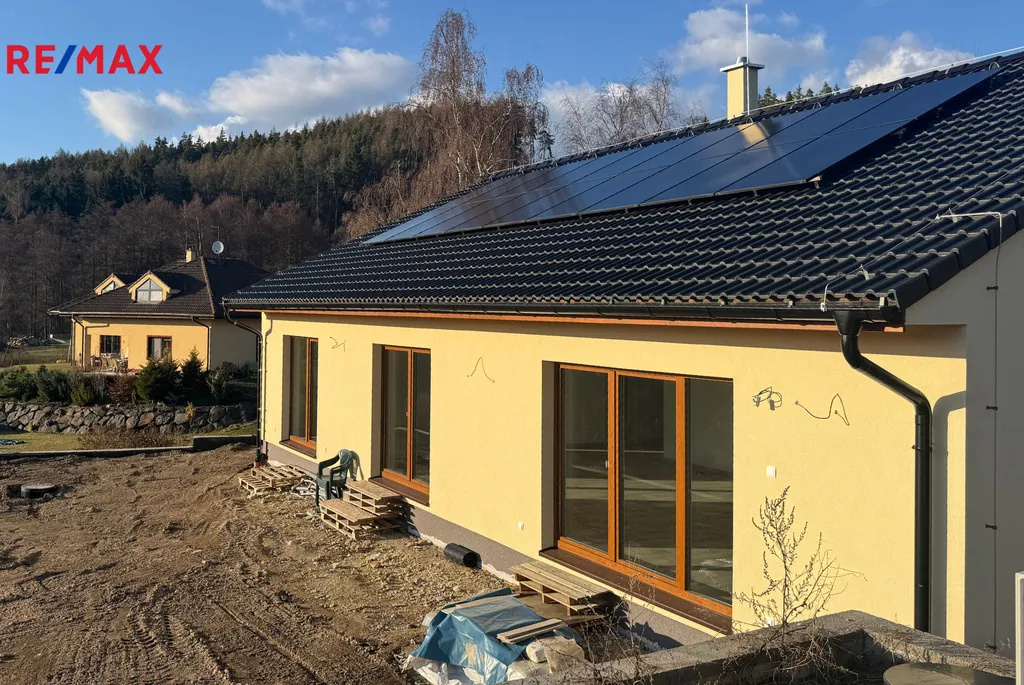 Je vybaven solární elektrárnou 8,1 kW, bateriovým úložištěm 12 kWh, chytrými termostaty, bezpečnostním systémem, podlahovým vytápěním, klimatizací i krbem. Moderní technologie a trojskla zajišťují nízké provozní náklady po celý rok.