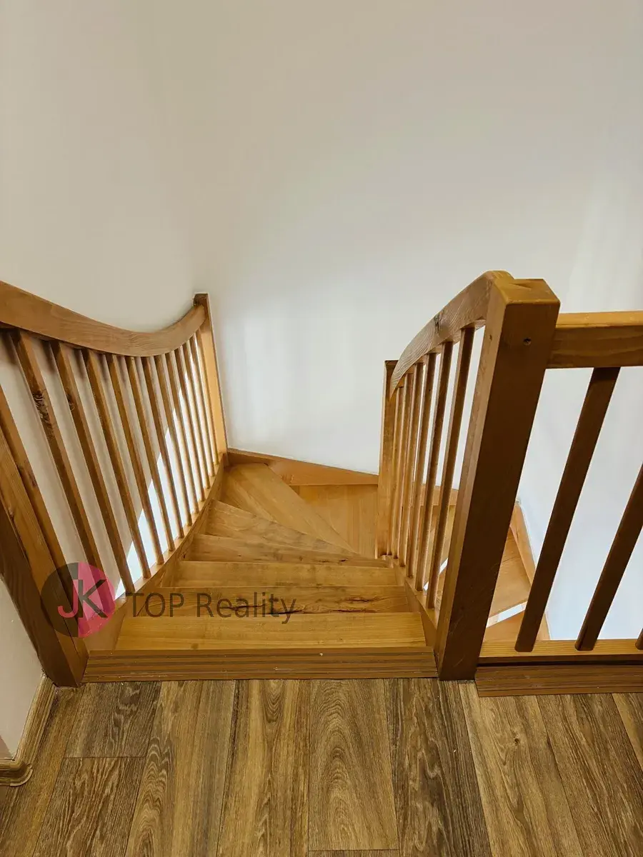 Celková plocha pozemku je 143 m2, z toho zastavěná plocha a nádvoří je 103 m2, užitná plocha cca 100 m2, zahrada 40 m2. Dispozice domu: 1.NP – chodba, komora, sprchový kout + WC, obývací pokoj + kk (sklokeramická deska s el. troubou, myčka na nádobí, digestoř), podlahové vytápění. 2.NP – 4 pokoje, terasa, koupelna s rohovou vanou a WC.