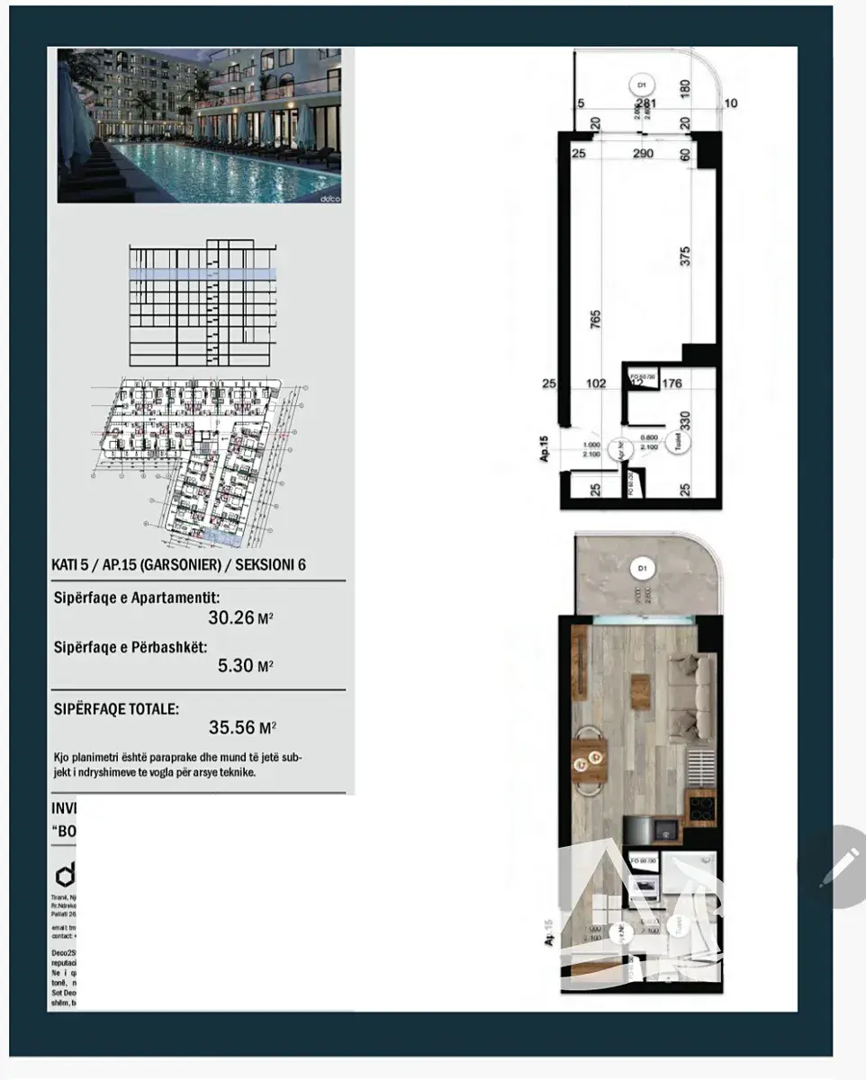 Nabízíme k prodeji moderní apartmán 1+kk, o ploše 35.56 m2, v moderním projektu, který je navržen s důrazem na kvalitu, funkčnost a elegantní design. Budova má osm nadzemních podlaží a disponuje dvěma podzemními patry garáží, které zajišťují dostatek parkovacích míst i maximální komfort pro rezidenty.